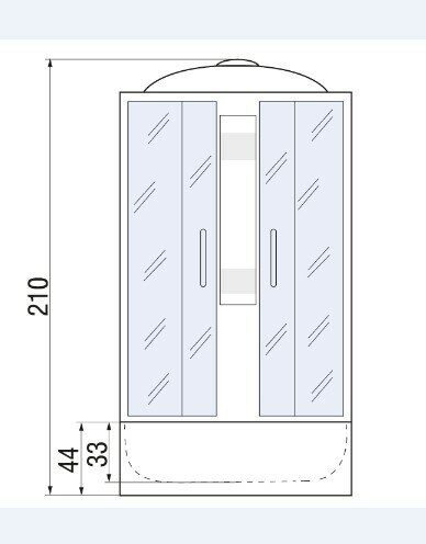 Стильная душевая кабина River Nara 100/44 MT сочетает в себе высокую функциональность, практичность и надежность. Для изготовления применяют безопасное закаленное стекло толщиной 4 мм, надежно фиксируемое алюминиевым профилем. Цвет профиля хром матовый. В комплекте встроенное сиденье, тропический (верхний) душ, душевой гарнитур, смеситель, переключатель режимов, полочка, сифон, передний съемный экран.