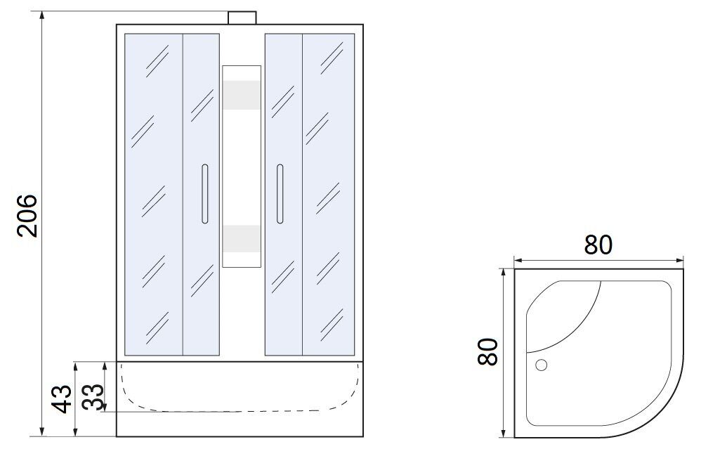 Стильная душевая кабина River Nara 80/43 MT без крыши сочетает в себе высокую функциональность, практичность и надежность. Для изготовления применяют безопасное закаленное стекло толщиной 4 мм, надежно фиксируемое алюминиевым профилем. Цвет профиля хром матовый. В комплекте встроенное сиденье, душевой гарнитур, смеситель, полочка, сифон, передний съемный экран.