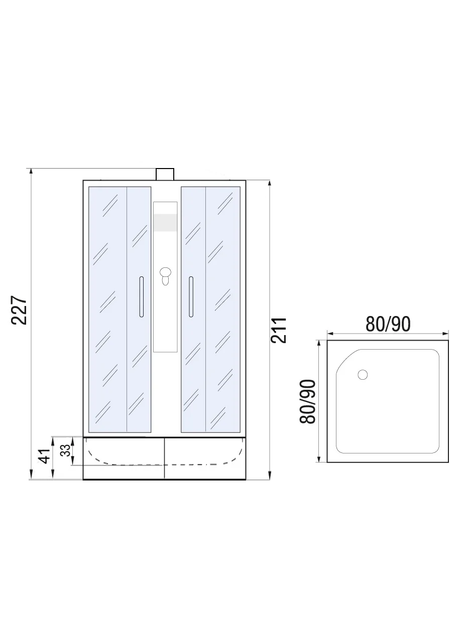 - Размеры, см (ш/г/в): 90х90х220.