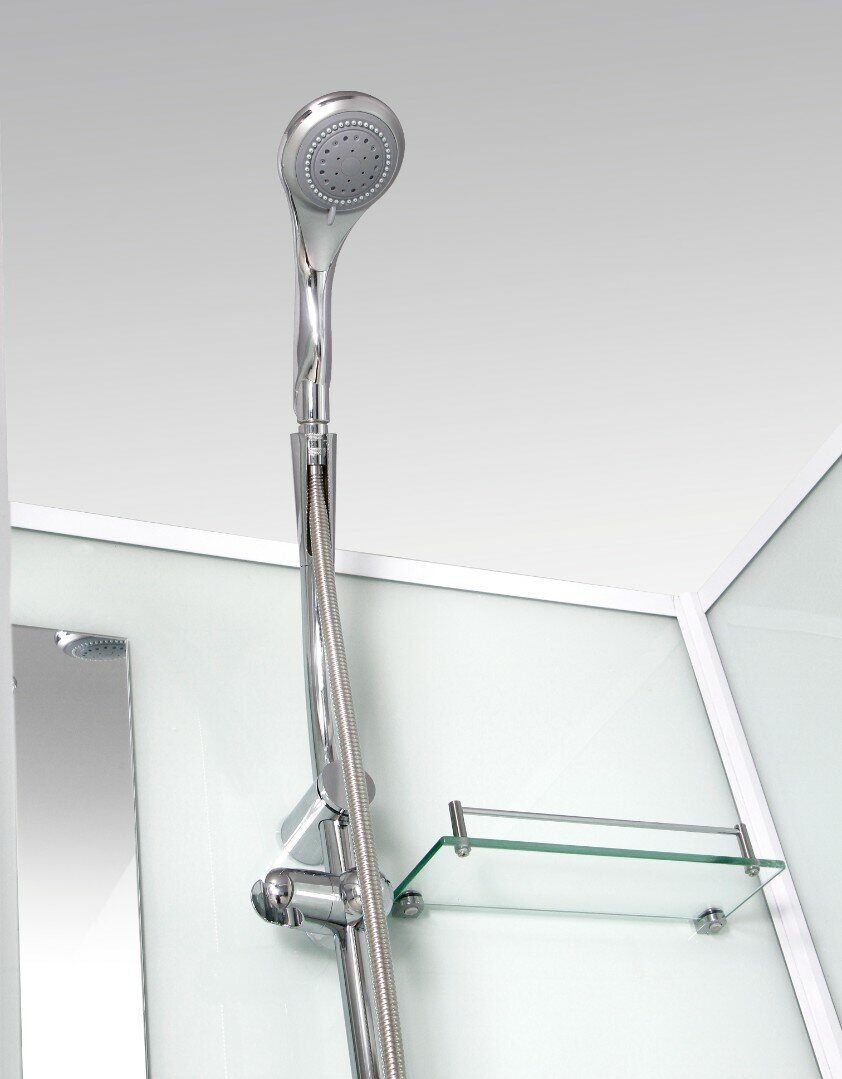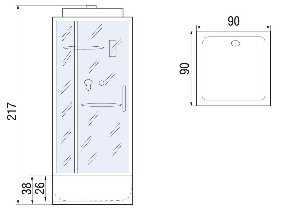 Стильная душевая кабина River Tana 90/38 без крыши сочетает в себе высокую функциональность, практичность и надежность. Для изготовления применяют безопасное закаленное стекло толщиной 6 мм, надежно фиксируемое алюминиевым профилем. Цвет профиля белый. В комплекте душевой гарнитур, смеситель, зеркало, полочки, сифон.