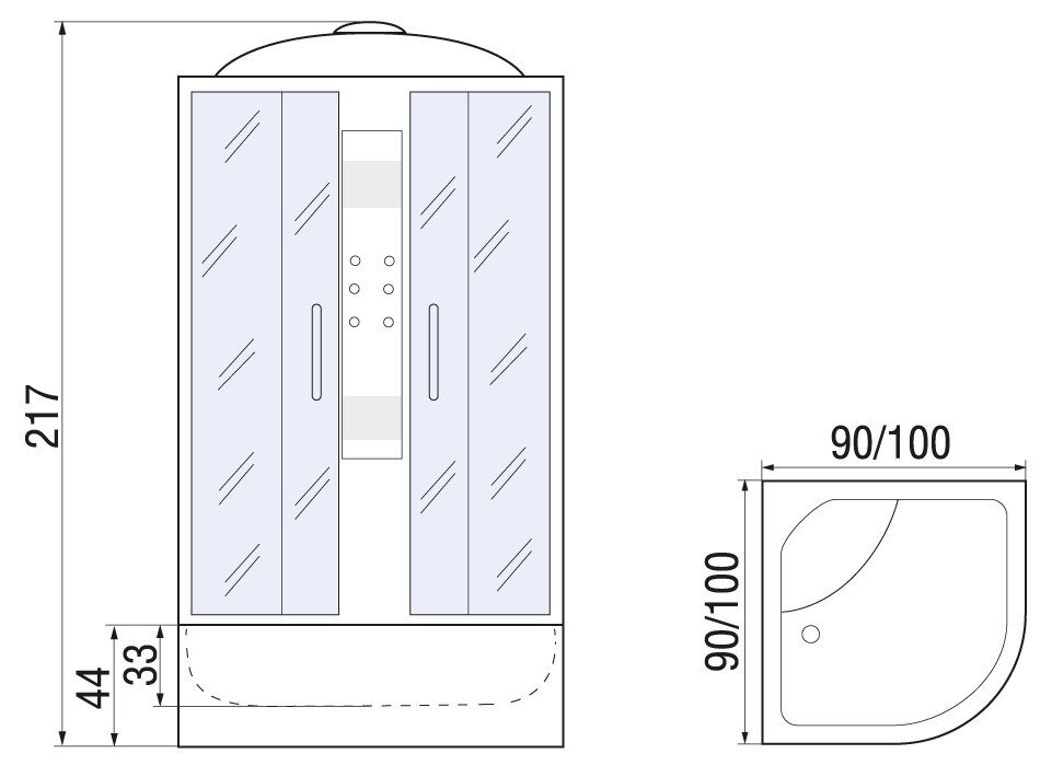 - Размеры (ш/г/в): 90х90х217
