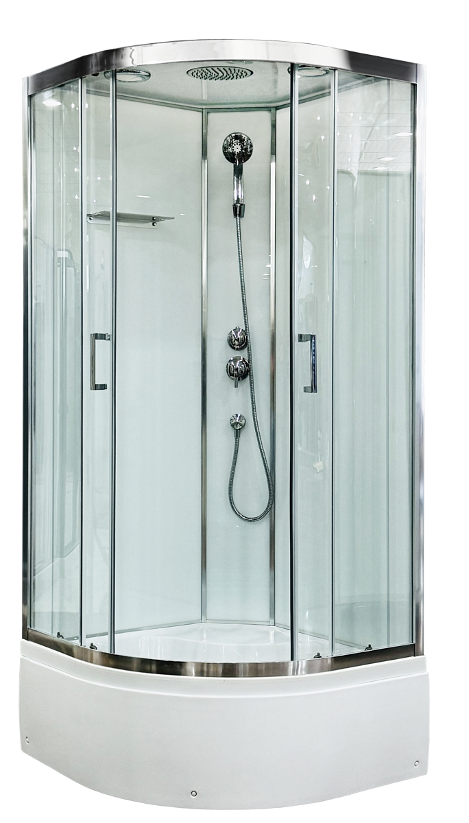 Стильная душевая кабина Royal Bath FATO RB 100CK-T-CH прозрачное стекло сочетает в себе высокую функциональность, практичность и надежность. Для изготовления применяют безопасное закаленное стекло толщиной 5 мм, надежно фиксируемое алюминиевым профилем. Цвет профиля хром. В комплекте: встроенное сиденье, душевой гарнитур, полочка, смеситель, тропический (верхний) душ.