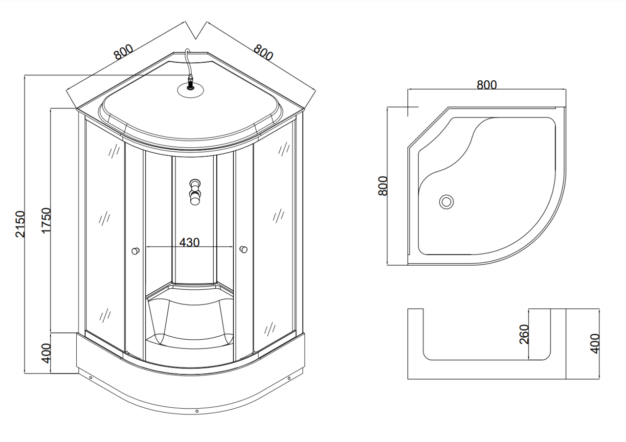 Душевая кабина Taliente TA-8080G 80х80х215 см четверть круга тонированная