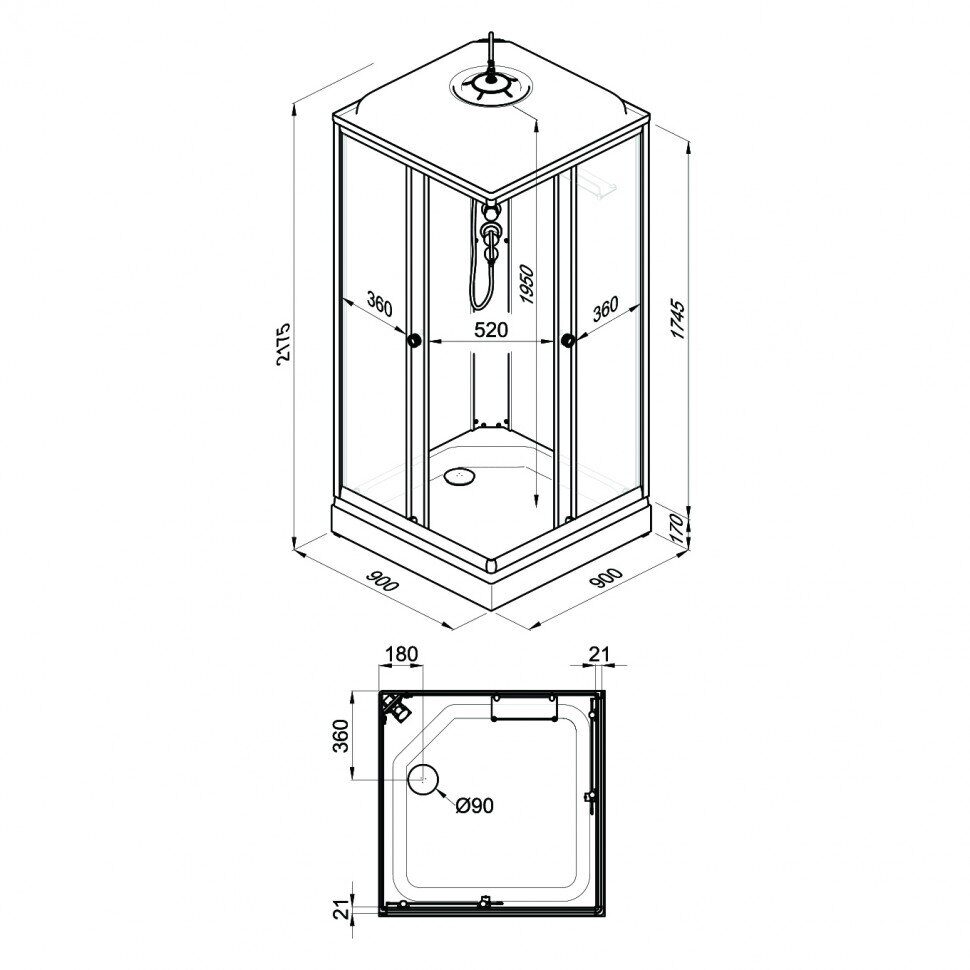 - Размеры, см (ш/г/в): 90х90х217.5.