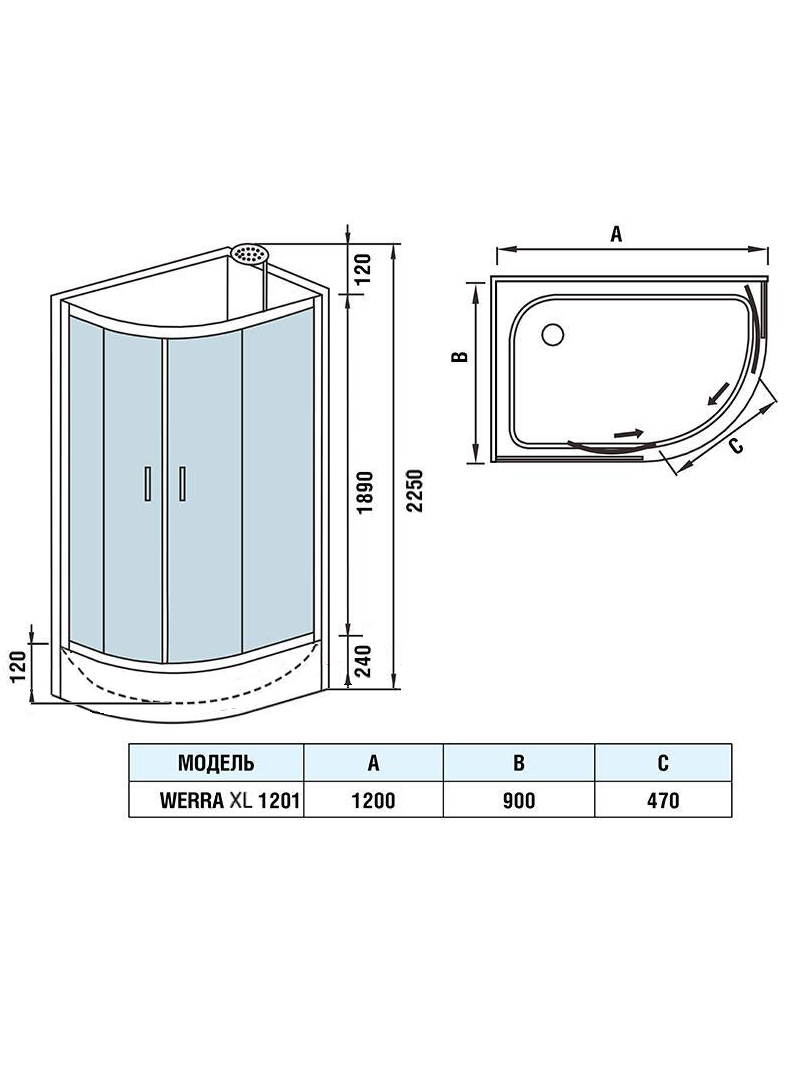 Душевая кабина WeltWasser WERRA XL 1201 L 120х90