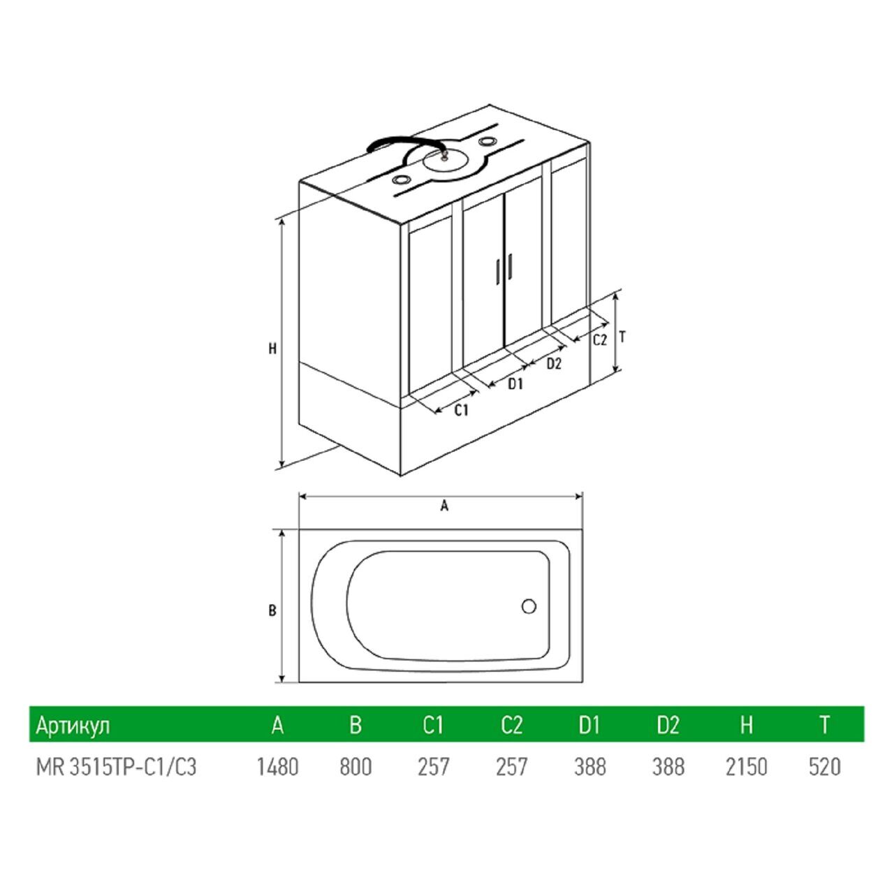 Душевой бокс MIRWELL MR3515TP-C3-RUS 1480х800х2150