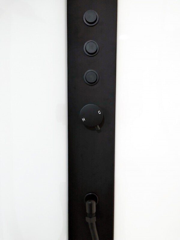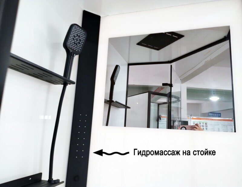 Оснащение Гидромассажные форсунки / Душевой гарнитур / Зеркало / Полочки / Сифон / Смеситель / Тропический (верхний) душ