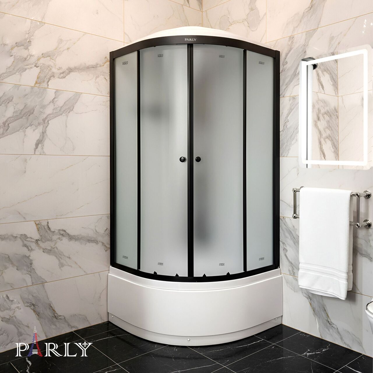 - Современный дизайн. Модельный ряд кабин PARLY представлен в различных стилях, конфигурациях и цветах, а также с различными формами поддонов. Поэтому можно индивидуально подобрать кабину практически для любого дизайнерского решения. Презентабельный вид кабинам придают закаленные стекла, которые способствуют надежности и не боятся химических средств, что позволяет дольше сохранить их внешнюю привлекательность.